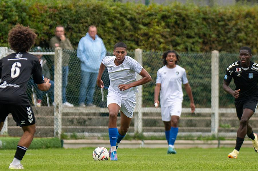 Quatre matches, quatre victoires pour nos U19 ! Même si celle-ci fut longue à se dessiner face à une équipe solide, mature. Mais les Hacmen, à l’image de leur circulation de balle sur certaines phases, patiente, réfléchie, l’ont construite peu à peu. Et si Gicquel se montra plusieurs fois brillant (3e, 27e, 70e), les joueurs de Jaïr Karam, parmi lesquels figuraient dans le onze de départ six U18 et un U17, n’ont guère volé leur succès.
